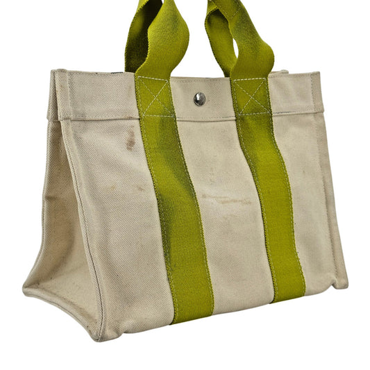 HERMES ホワイト x グリーン ボラボラMM ハンドバッグ