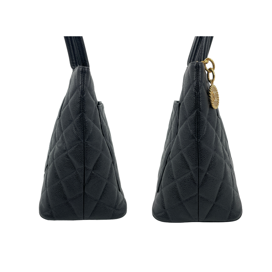 CHANEL キャビアスキンデカココマーク Wチェーントートバッグ