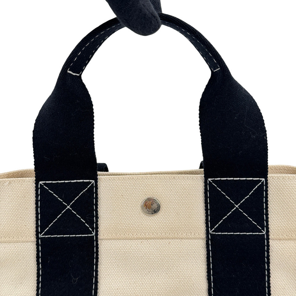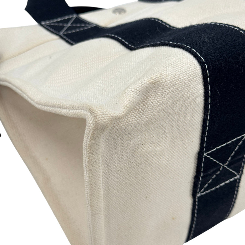 HERMES ホワイト x ブラック ボラボラMM ハンドバッグ